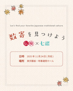 2025.11.22 舞台/イベント 【高山都】トークイベント出演情報 11月24日(祝) 伝検×七緒コラボイベント「数寄を見つけよう」 15:30~17:00 トークショー「私の数寄(すき)な伝統文化」 17:00~19:00 懇親会/出展ブース、伝統文化体験等 チケット購入は伝検サイト上のこちらのページ「お申し込みはこちら」からアカウントを作成して、「イベント申込」をしてください。 https://denken-test.jp/enent202511/ SHARE 一覧へ戻る
